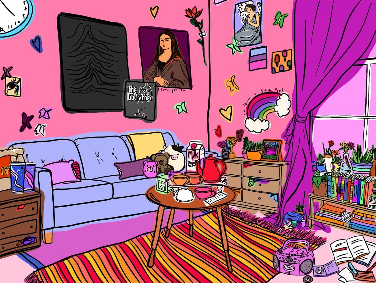 here at pink house, we do whatever it takes to provide our guests with the bestest most greatest amazingest experiences of all time. the living room here was once home to Marilyn Monroe, Kurt Cobain, and Julius Cesar! When you're chilling out in this room you're not only relaxing you're becoming a part of history.